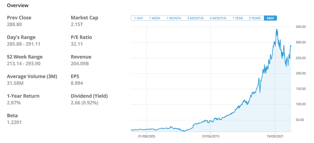 Nagu ülaltoodud graafikust näha, siis on Microsoft aktsia aastate jooksul pidevalt tõusnud, kuigi hind hakkas 2021. aastal jällegi langema.