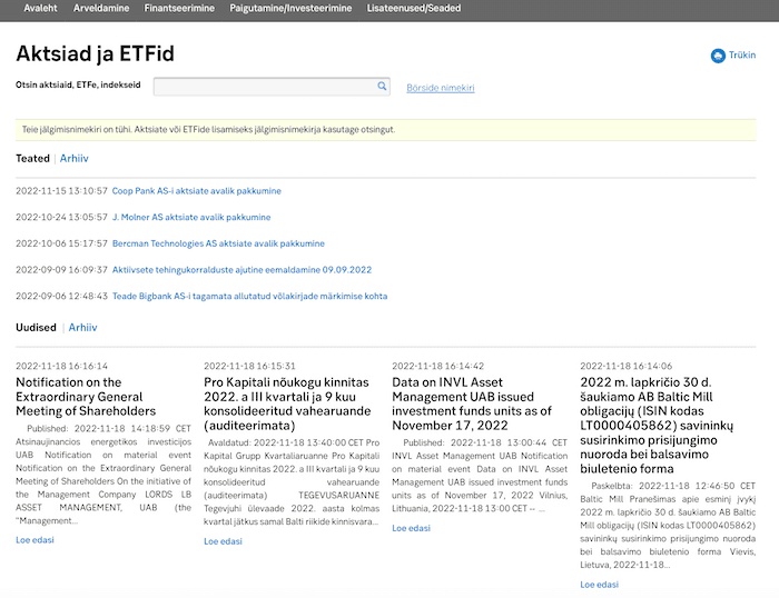 Kui oled ostnud aktsiaid oma kodupanga kaudu, kasuta kindlasti võimalikke infokanaleid, kui sinu jaoks on käepärasem panga kaudu infot jälgida.