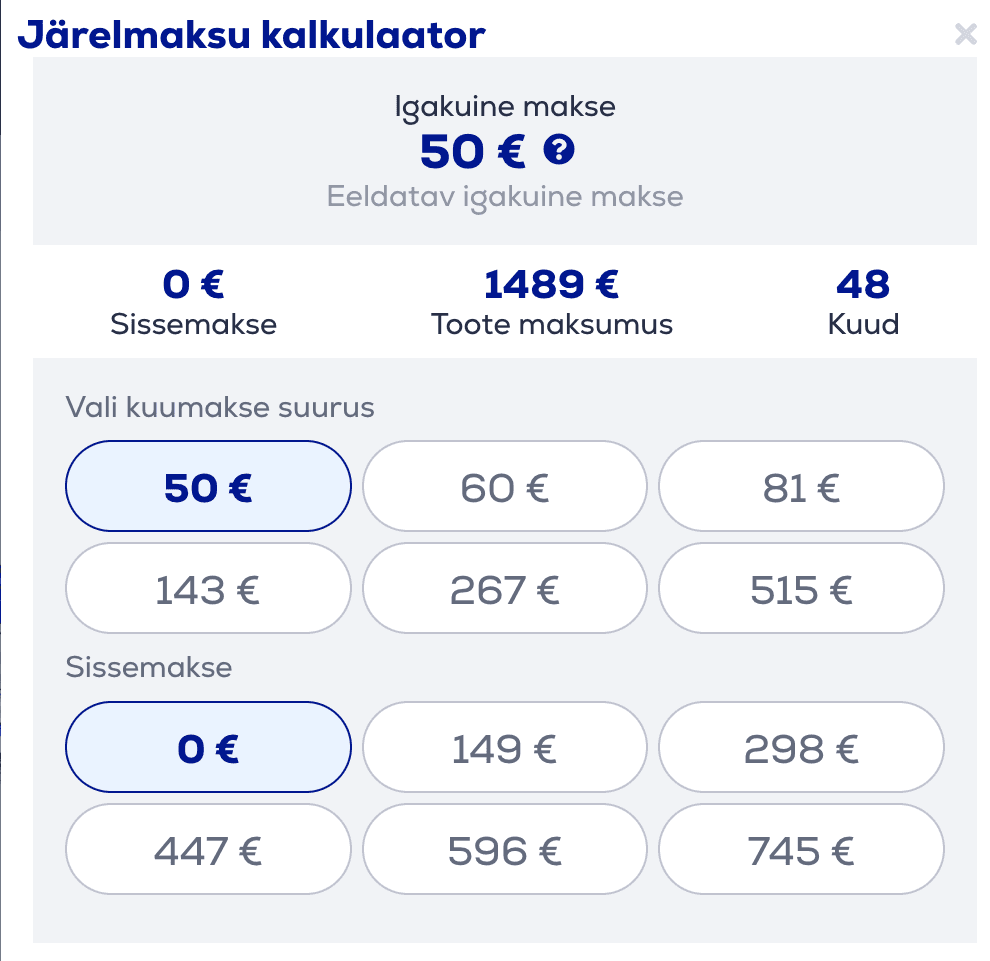 | LHV järelmaks | 50 – 15 000€ | alates 8,9% | alates 9,90€ | 23,14% |